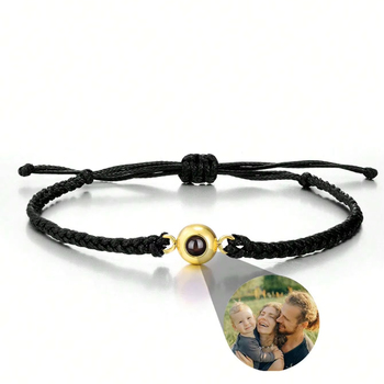 DuoYing1pc愛する人のためのユニークな理想的なギフトカスタム写真プロジェクションステンレススチールブラックウーブンカップルブレスレット