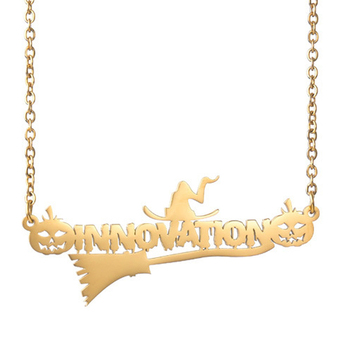 Duoyingステンレス鋼カスタマイズされたカボチャの魔女ハロウィンジュエリーギフト名ネックレス